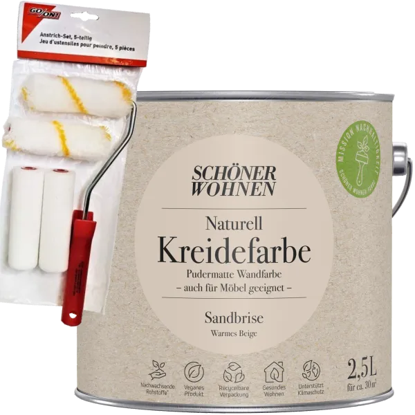 2,5L Schöner Wohnen Naturell Kreidefarbe Sandbrise, Warmes Beige + Farbroller…