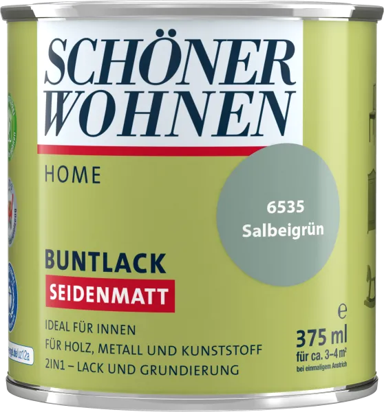Schöner Wohnen Home Buntlack glänzend   Schnell trocknender Acryllack mit hoher Deckkraft und gutem Verlauf. Er ist ideal für innen . Auch außen anwendbar. Geeignete Untergründe sind Holz, Metall, Zink, Alu, Hart-PVC. Zum Beispiel für Türen, Fenster, Möbel, Kinderspielzeug, Holzverkleidungen, Heizkörper (bis +80 °C).     Verbrauch: ca. 100-120 ml/m² je Anstrich   Untergrund: Holz, maßhaltig Holz, nicht maßhaltig Kunststoff, Zink, Kupfer, Alu Eisen, Stahl   Verarbeitung: Rollen, Streichen Airless-Spritzen Kennzeichnung gemäß Verordnung (EG) Nr. 1272/2008 [CLP] Besondere Vorschriften für ergänzende Kennzeichnungselemente für bestimmte Gemische EUH208 Enthält 1,2-BENZISOTHIAZOL-3(2H)-ON. Kann allergische Reaktionen hervorrufen. EUH210 Sicherheitsdatenblatt auf Anfrage…