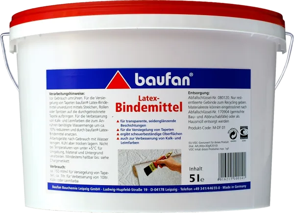Baufan Baufan Schutzfarbe (ehem. Anti-Schimmelfarbe) ist ein wasserverdünnbarer, emissionsarmer und lösungsmittelfreier Spezialanstrich mit internem Filmschutz gegen den Befall von Schimmel-, Algen- und Moos im Innenbereich.   besonders geeignet für Küchen, Bäder und Feuchträume weiß, hochdeckend, abtönbar mit Volltonfarben, scheuerbeständig   Produkteinstufung nach DIN EN 13 300:   Nassabrieb: Klasse 2 Kontrastverhältnis: Klasse 2 bei einer Ergiebigkeit von 6,5 m²/l   Glanzgrad: matt Maximale Korngröße: fein   Anwendungsbereich: Innenfarbe für Wand- und Deckenflächen aus Beton, Zement- und Kalkzementputz, Mauerwerk, Gipsunter- gründe, Faserzementplatten. Auch für haftfeste Disper- sionsputze und Tapeten geeignet. Besonders empfehlenswert für Baderäume,…