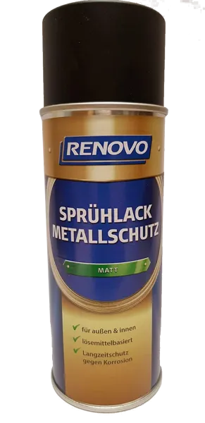 schnell trocknender Qualitätssprühlack kratz-, stoß- & schlagfest wetterbeständig   Eigenschaften Marke: RENOVO Farbe: schwarz Anwendungsbereich: Holz, Metall und Kunsstoff Einsatzbereich: innen & außen Glanzgrad: matt Gebindeart: Sprühdose Optik/Effekt: Matt-Effekt Geeignet für: Für Neu- und Renovierungsanstriche Besonderheiten: Schnell trocknend, kratz-, stoß- und schlagfest. Anwendung: Sprühen Durchgehärtet nach ca.: 12 Std. UN/BAM-Zulassung: 1950 Anwendungsbereich: Holz, Pappe, Stein, Metall und Kunststoff (PP und PE)   Technische Daten Gebindegröße: 400 ml Untergrundeignung: Granit Viskosität: flüssig Anstrichart: deckend Gebrauchsfertig: Ja Deckkraft: Hoch Verbrauch: Ca. 200 ml/m² je Schicht Untergrundbeschaffenheit: Trocken, Fest, Sauber, Frei von trennenden/färbenden…