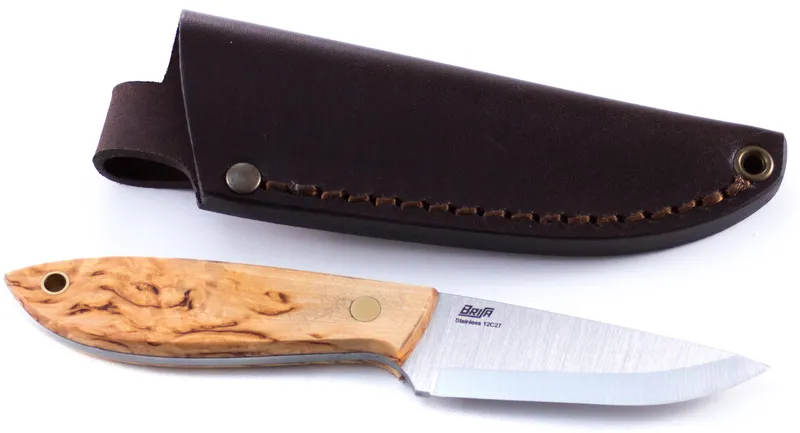 BRISA Messer Bobtail 80 Scandi, Maserbirke, 80mm, rostfrei