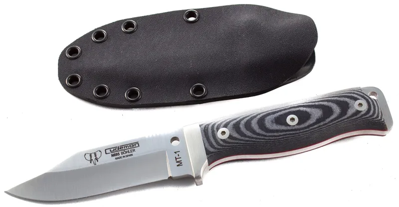 Das Cudeman MT-1. Extrem robustes Sport- u. Outdoor Messer. Die Griffschalen aus grau-schwarzem Micarta sind aufgeschraubt.