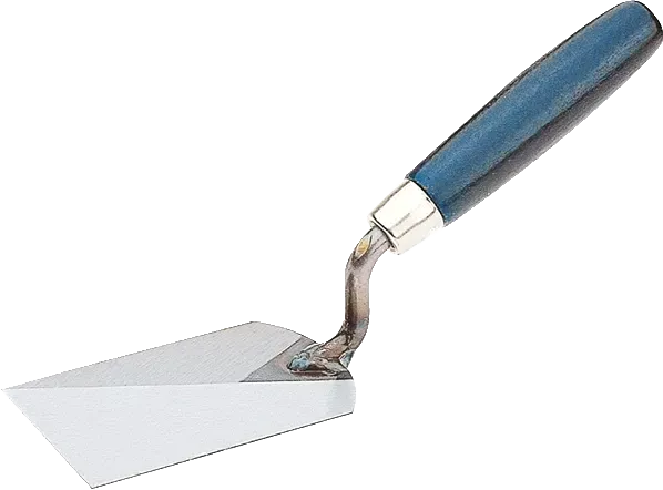 Glättkelle Blatt aus Edelstahl rostfrei nietlos mit blauem gebogenem Heft Blattstärke 0,7 mm für Linkshänder Rechteckzahnung, 4 mm, 130 x 280mm