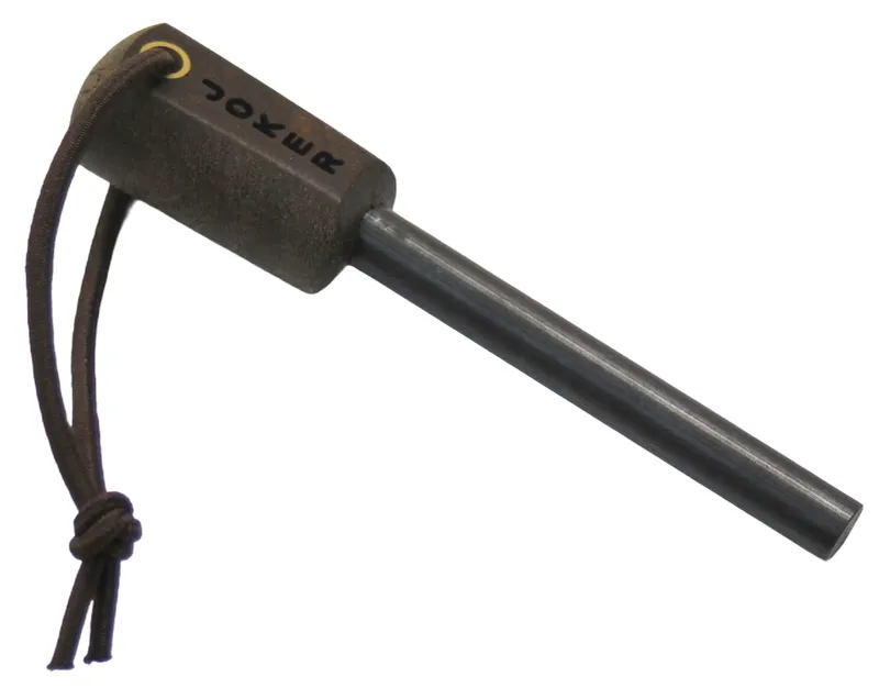 Joker Feuerstahl, Firesteel oder auch Feuerstarter mit Walnussholz Griff und Gummischnur.