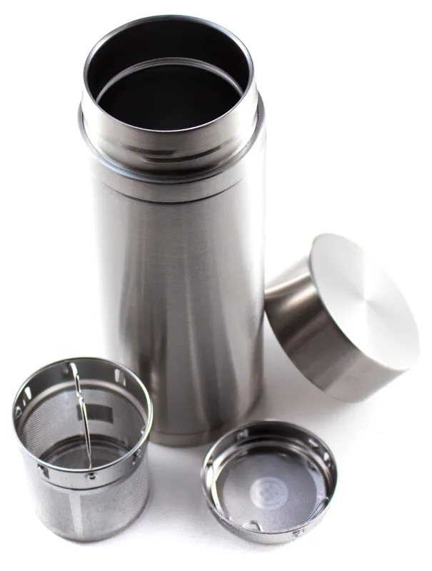 Der Tee – Thermobecher von Qwetch hat ein Fassungsvermögen von ca. 400ml und ist aus doppelwandigem 18/8 Edelstahl.