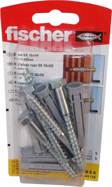 Vorteile: ▪ Die 4-fach-Spreizung sorgt für ptimale Krafteinleitung in den Baustoff und bietet hohe Haltewerte in Voll- und Lochbaustoffen. ▪ Der spreizdruckfreie Dübelhals verhindert, dass beim Eindrehen der Schraube Spreizkräfte an der Baustoffoberfläche entstehen. Dadurch werden Beschädigungen von Fliesen und Putz verhindert. ▪ Der ausgeprägte Dübelrand verhindert das Tieferrutschen in das Bohrloch und ermöglicht eine einfache Montage. ▪ Durch die größere Verankerungstiefe des SX 6×50, 8×65 und 10×80 sind die Dübel besonders geeignet für Befestigungen in Lochbaustoffen, Porenbeton und zur Putzüberbrückung. Anwendungen: ▪ Leuchten ▪ Garderoben ▪ Bewegungsmelder ▪ Sockelleisten ▪ kleine Wandregale ▪ leichte Spiegelschränke ▪ Briefkastenanlagen…